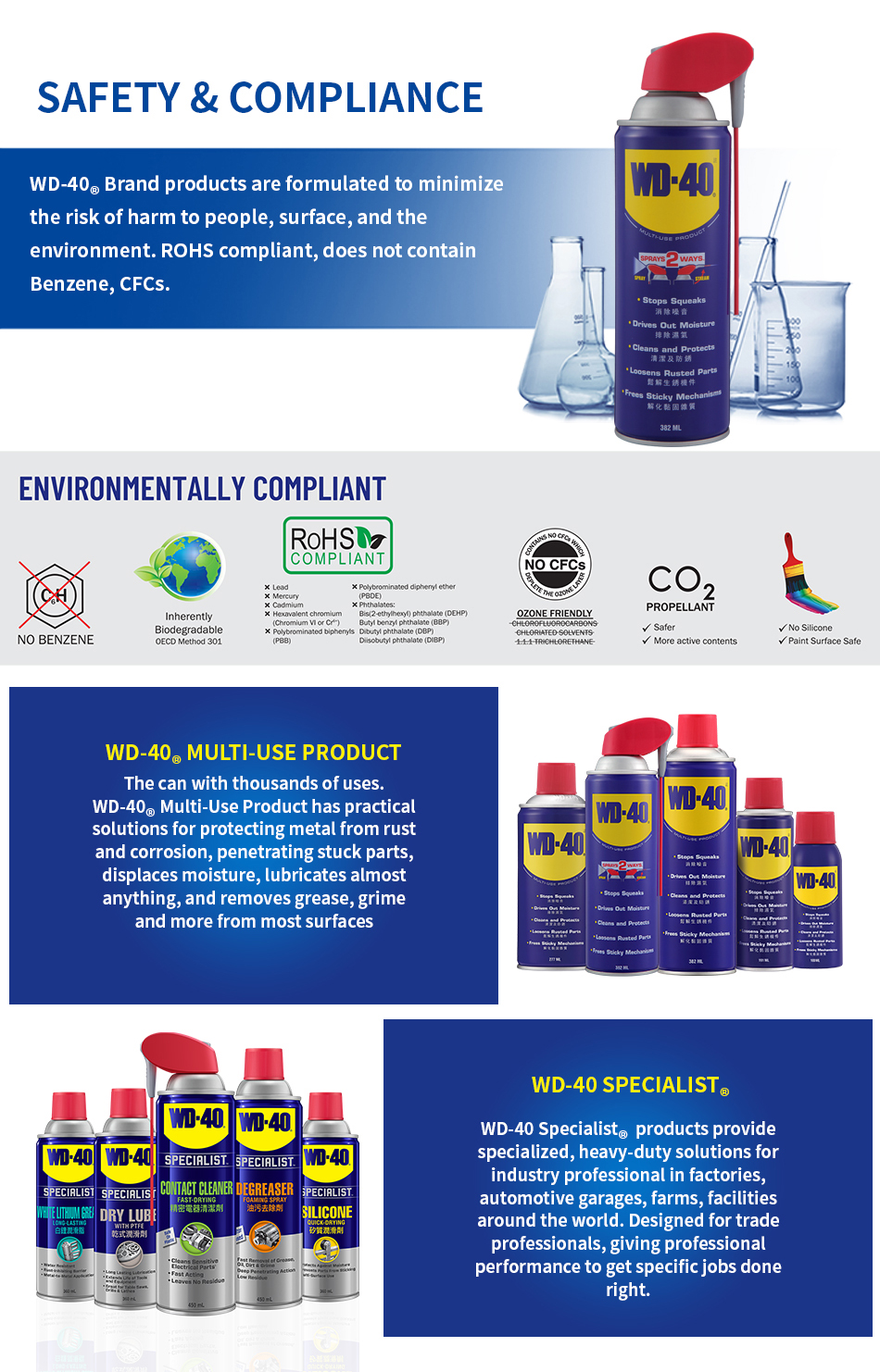 WD-40 Specialist® Bike Degreaser foaming action clings to chain, cogs and gears to deeply penetrate and remove stubborn grease and grime from all moving parts. Experience the difference of a fast-acting professional grade formula that removes dirt, mud & grime.