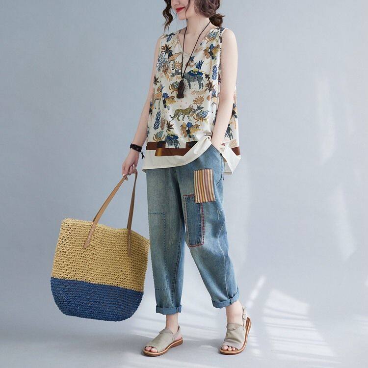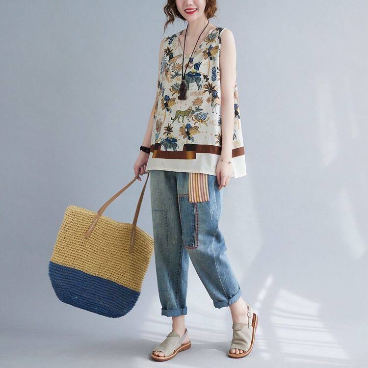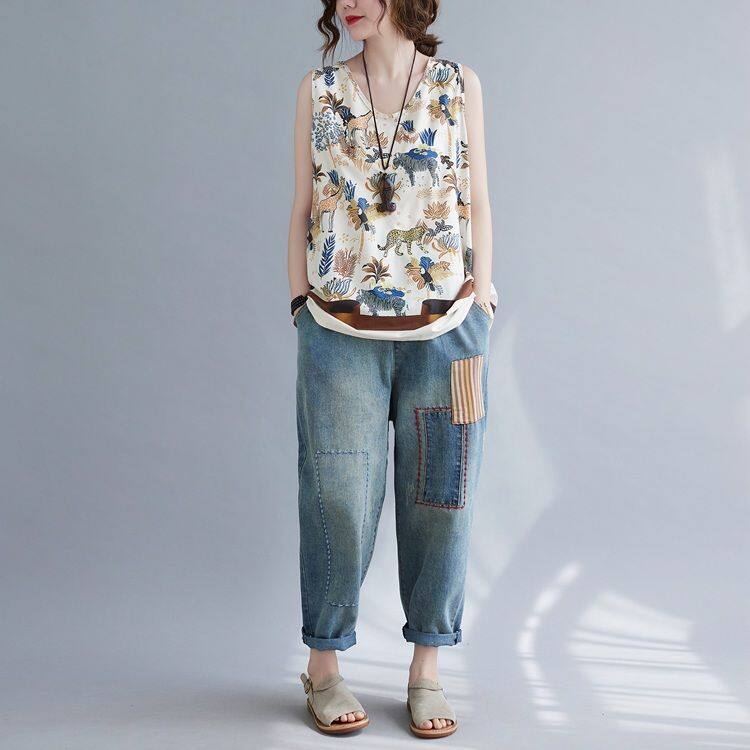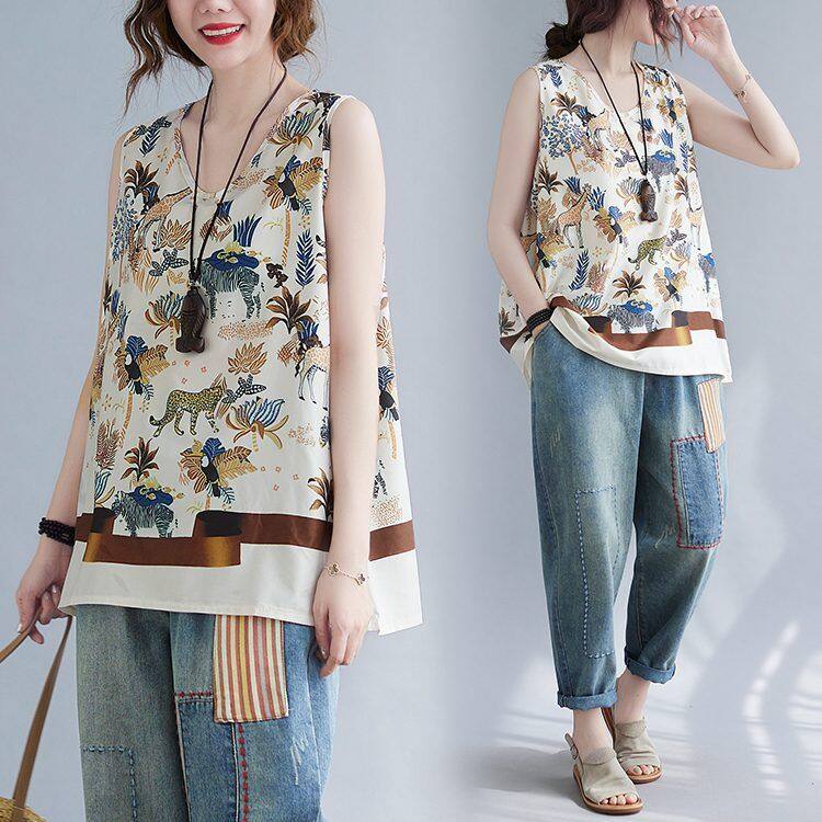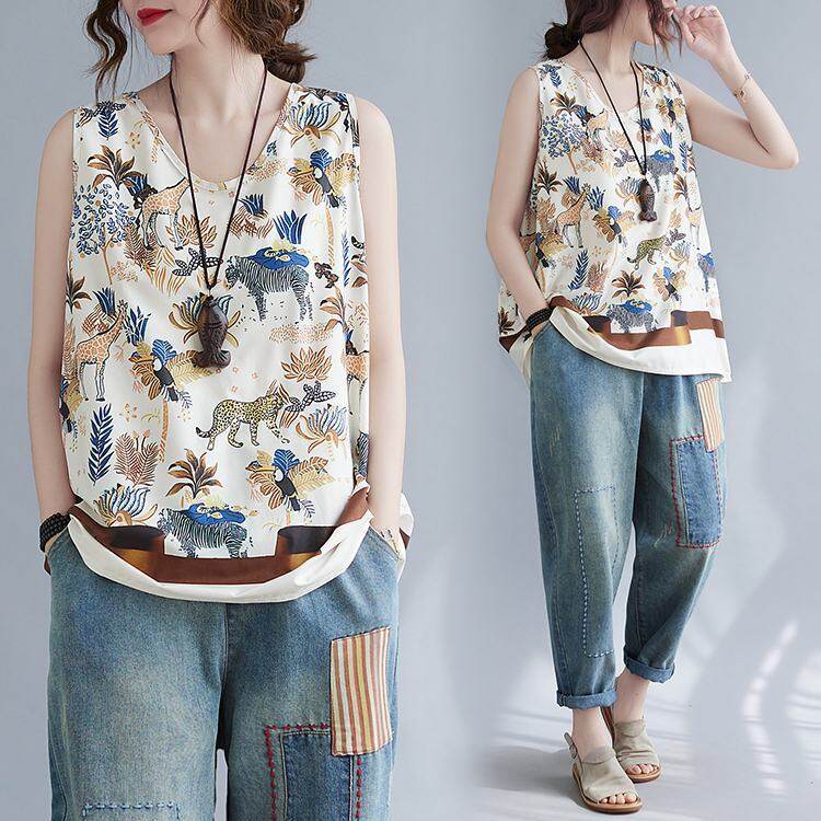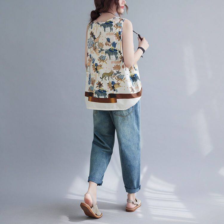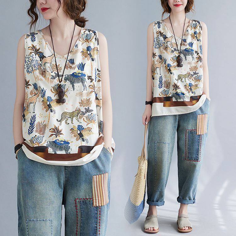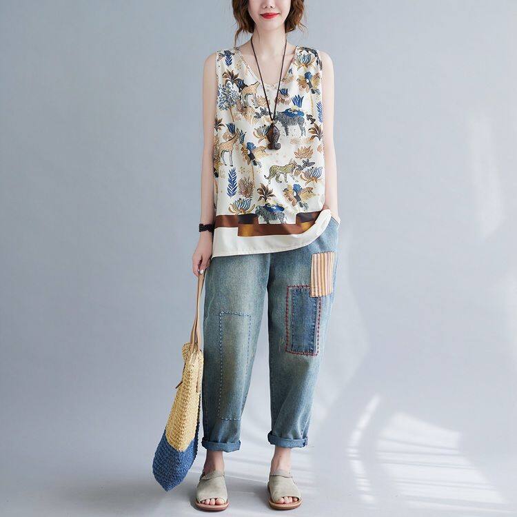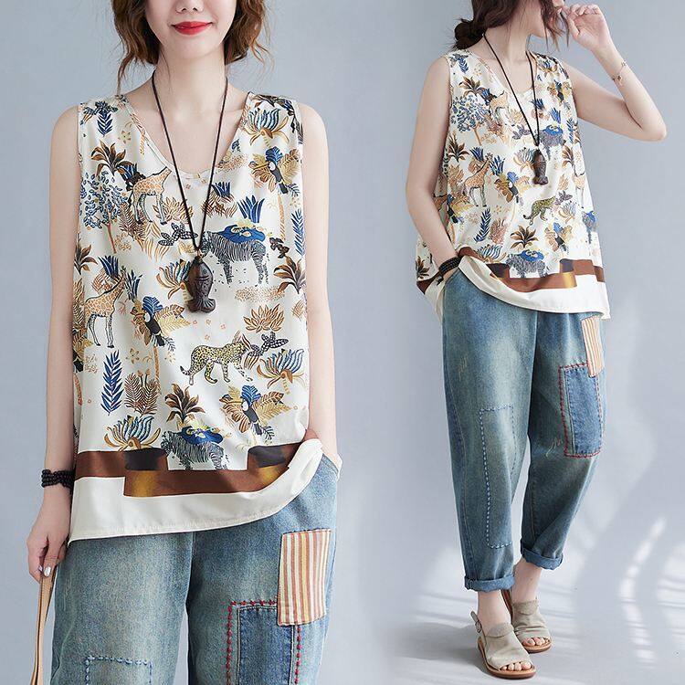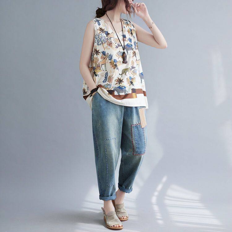 WhiteTime V领上衣女式无袖背心T恤女式外穿大号女式夏季背心女式夏季薄款紧身裤女式301T0852